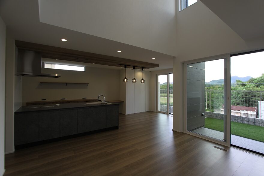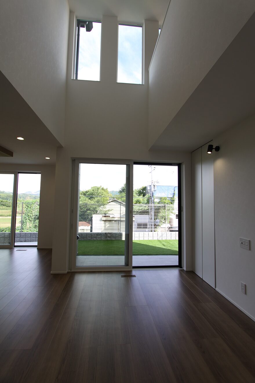 大窓のリビングと広い庭、吹き抜けが心地よい住まい。